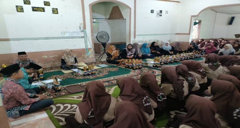 Martapura (MTsN 6 Banjar). 480 siswa MTsN 6 Banjar menerima rapor hasil Asesmen Sumatif Akhir Semester (ASAS) Ganjil Tahun Pelajaran 2024/2025, serta pembagian hadiah untuk siswa berprestasi per kelas dan siswa berprestasi paralel. Jum’at (20/12/2024) di mushola KH. Badaruddin.