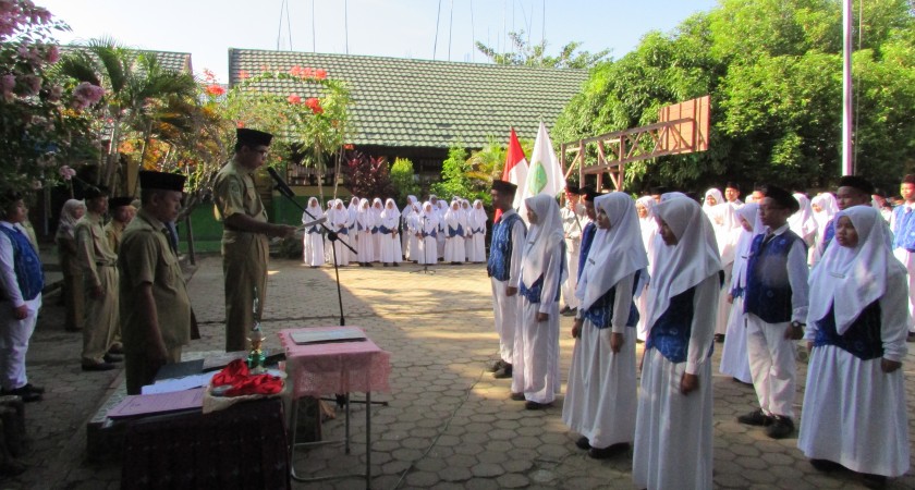 Martapura - MTsN 6 Banjar. Kepala Madrasah melantik pengurus Organisasi Siswa Intra Madrasah (OSIM) masa bakti 2017/2018, Senin (25/09/17) pagi saat upacara di halaman madrasah.